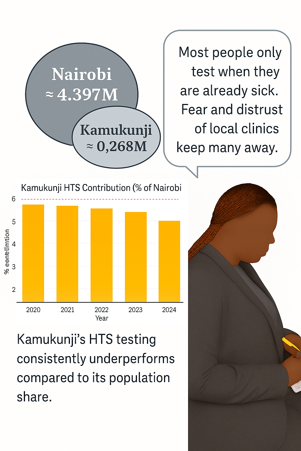 Kamukunji’s HTS data highlights a pressing need for targeted, community-centered HIV interventions. Addressing social stigma, improving access, and incorporating community voices into outreach will be key to reversing current trends. With stronger political will, investment, and monitoring, Kamukunji can be a model constituency in helping Nairobi and Kenya meet HIV response goals.